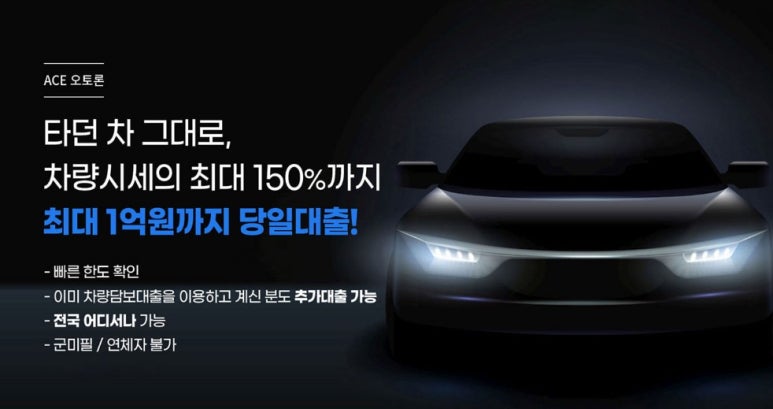 자동차를 담보로 필요한 자금을 마련할 수 있는 ACE 오토론은 시중은행에서 제공하는 자동차 대출에 비해 조건이 유리하며, 제2금융권 및 대부업체를 통해 자금을 쉽게 확보할 수 있는 서비스입니다. 특히, 최근 은행권의 오토론에 적용된 엄격한 대출 규제 속에서 ACE 오토론은 보다 폭넓은 조건을 제공합니다.